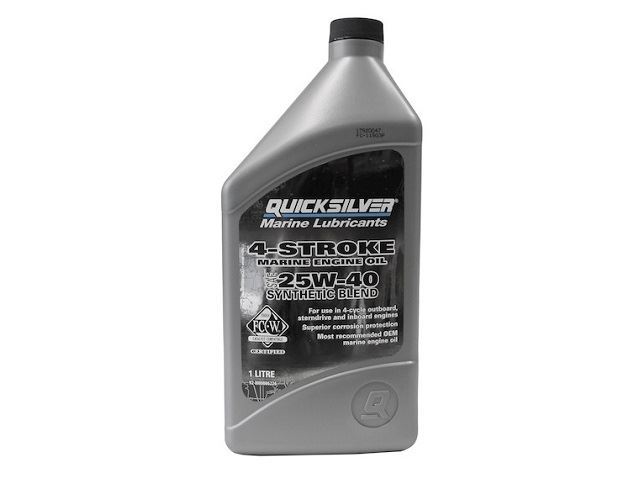 Quicksilver Synthetic 25W40 for inboard and outboard engines.For use in most 4-Stroke marine engines.Quicksilver Synthetic 25W40 is approved for all marine 4-Stroke applications, including some Verado Outboards, and Mercruiser. It exceeds all marine industry 4-Stroke oil requirements including FC-W and is FC-W Catalyst compatible.